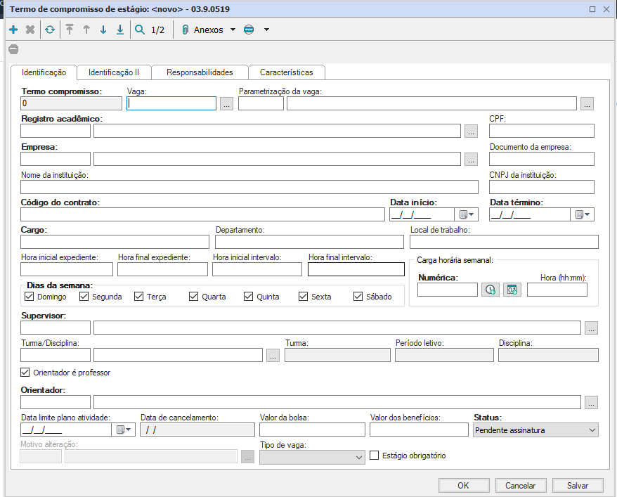 Termo de Compromisso: campo preenchido automaticamente pelo sistema;