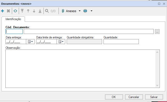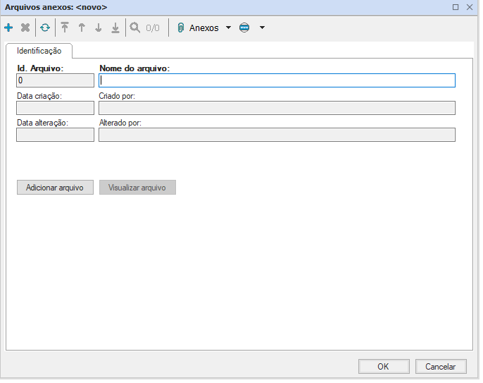 Depois de preencher os campos, clique em “Adicionar arquivo” e escolha o anexo correspondente, em seguida, selecione a opção “OK” para concluir a inclusão do arquivo