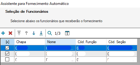 Fornecimento Automático | Aba- Seleção de Funcionários
