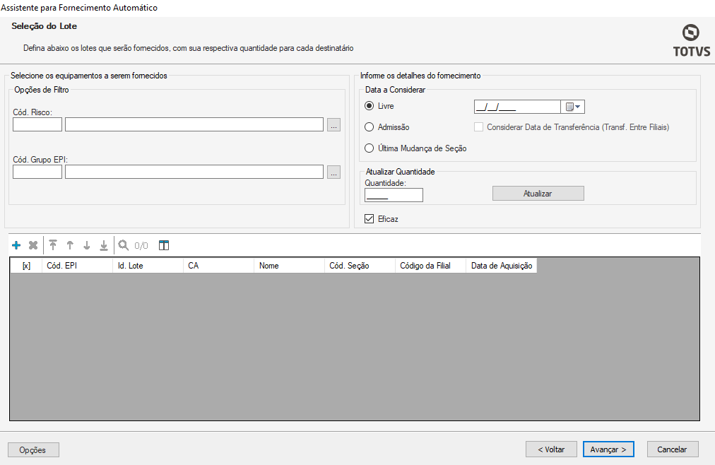 Cód. Grupo EPI: Informe o grupo EPI do lote desejado