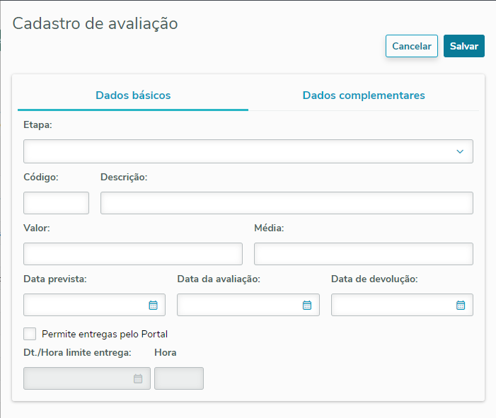 Data Prevista: informe a data prevista de realização da avaliação que está sendo cadastrada;
