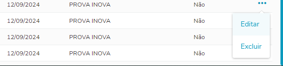 - Se a opção selecionada for “Editar” abrirá a tela do cadastro da prova, para que seja feita as devidas alterações;