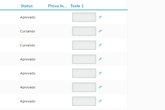Para realizar o lançamento de notas das provas, selecione a disciplina e escolha a opção “Notas de avaliação”