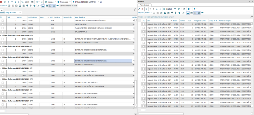 Feita configuração do agrupamento, outro requisito para disponibilidade da disciplina no Conecta é ela ter Planos de Aulas gerados.
