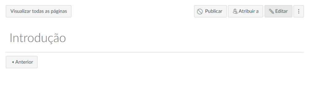 Depois de criar os tópicos, deverá ser adicionado o conteúdo do estudo em forma de páginas. Para realizar essa ação, clique no tópico criado e em seguida, selecione a opção “editar” localizada na parte superior direita
