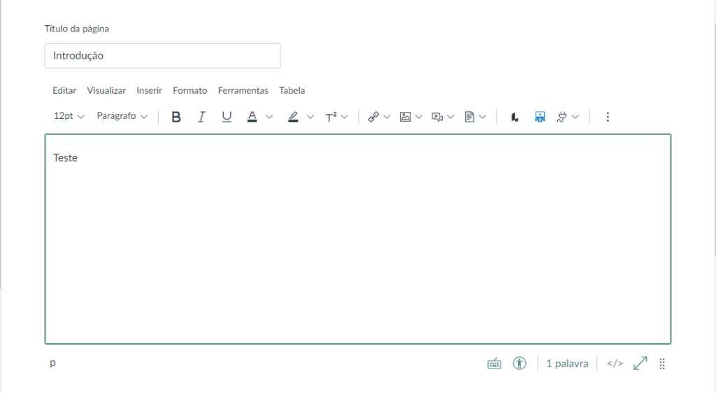 Ao selecionar a opção abrirá uma tela semelhante com a do Word onde poderá ser escrito o conteúdo que será abordado no estudo que está sendo criado. Através dessa ferramenta também é possível adicionar imagens, vídeos, áudios e links