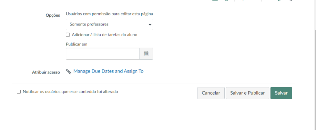 Depois de realizar a construção do estudo é importante selecionar a opção “salvar” para os casos de estudo com liberação futuras ou para estudo que ainda não foi finalizado e existe no sistema a funcionalidade de “salvar e publicar” para estudos que foram criados e serão liberados imediatamente para os alunos