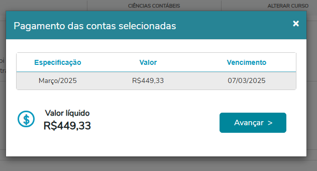 Será exibido um resumo do título selecionado com valor e vencimento. Clique em “Avançar”: