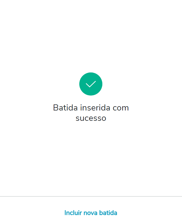 A mensagem Batida inserida com sucesso será apresentada juntamente com a opção Incluir nova batida para caso queira inserir outra na sequência.