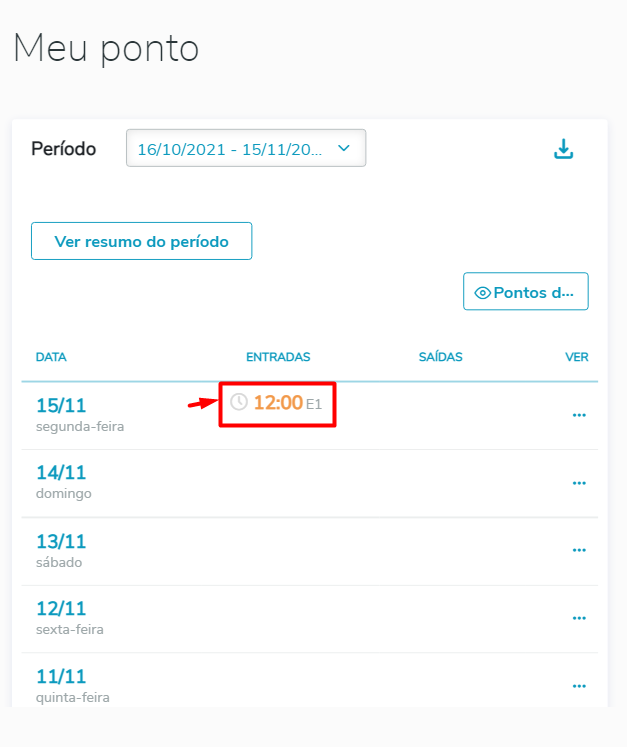 Após a inclusão, as batidas serão apresentadas no espelho do funcionário na cor laranja. Com essa característica, ainda não serão consideradas para cálculo pois é necessária a aprovação do gestor.