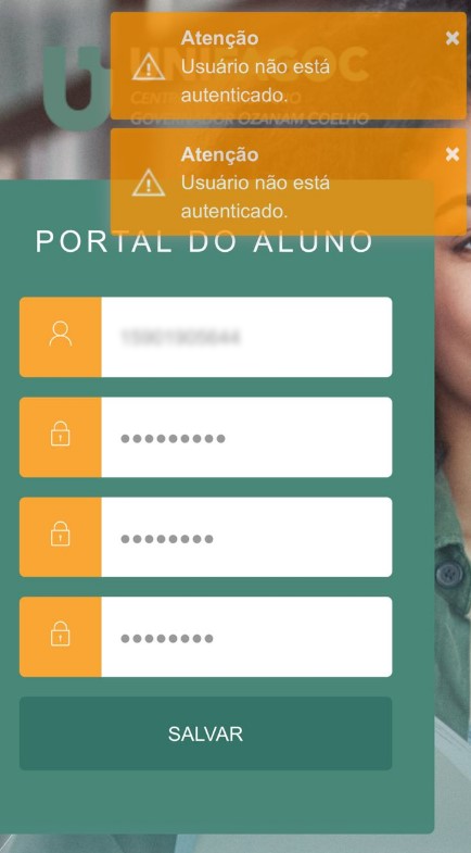 Esse erro acontece ao realizar o processo de Troca de senha no Portal do Aluno.