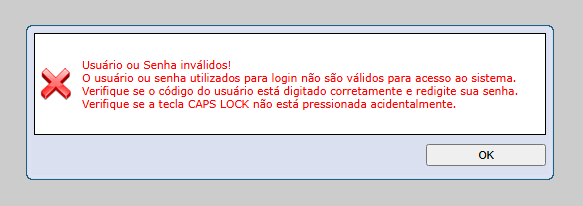 Esse erro padrão indica que o usuário informado no momento do login não foi encontrado em nossos registros.