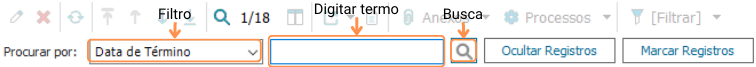 → Procurar. Ao dar um clique sobre o item, abre uma pequena área de busca para a localização de registros dentro de um filtro e digitando um termo: