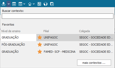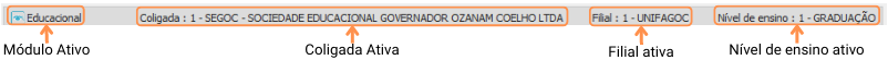 É importante lembrar que não é possível trabalhar com mais de um contexto ao mesmo tempo, ou seja, não é possível trabalhar com mais de uma filial ou nível de ensino simultaneamente.