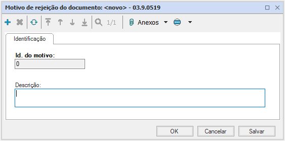 Apresenta apenas Id. do motivo e descrição, mas o Id. é criado automaticamente, em ordem numérica de cadastros.