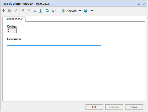 Apresenta apenas código e descrição, mas o código é criado automaticamente, em ordem numérica de cadastro dos tipos diferentes de alunos.