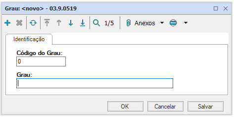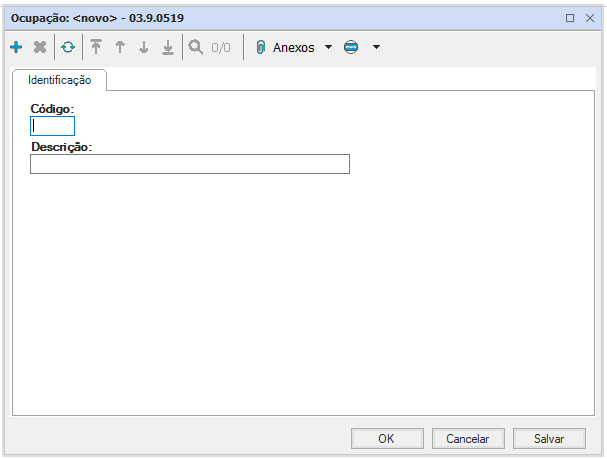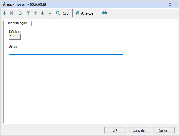 Apresenta apenas código e nome, ambos de preenchimento manual.