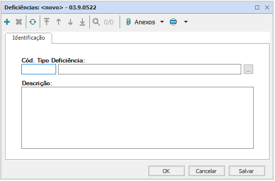 Deve-se escolher entre os tipos de deficiência padrão, já vinculados a um código, e descrever a especificidade da deficiência na descrição.