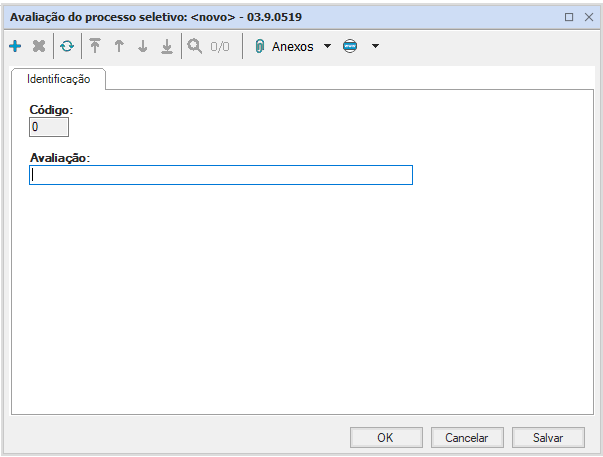 Apresenta apenas código e avaliação, o código é gerado automaticamente e a avaliação corresponde ao nome do tipo de avaliação à ser cadastrado.