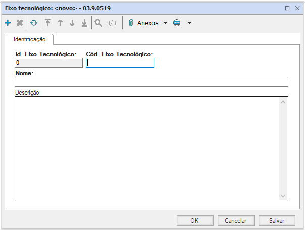 Possui um Id, um código do eixo e o nome como campos de preenchimento obrigatório.