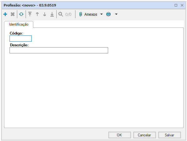 Cadastro de profissões do Educacional, que pode ser vinculado ao cadastro do professor ou e do aluno. Utilizada apenas como banco de dados e apresenta apenas código e descrição como campos à serem preenchidos.