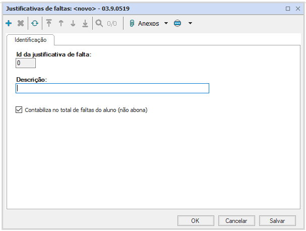 Cadastro das modalidades de justificativas de falta, que podem ser definidas em cadastro como contabilizáveis ou não dentro do total das faltas do aluno.