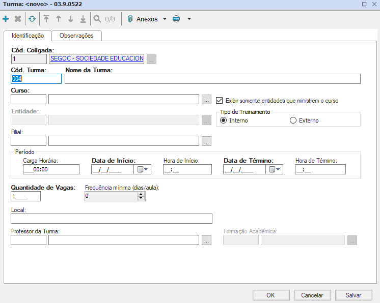 O Cadastro de Turmas tem como objetivo registrar e acompanhar os treinamentos gerenciados pela coligada em questão, nos quais as pessoas serão qualificadas.