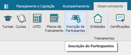 É necessário realizar as inscrição dos participantes que irão fazer parte da turma e consequentemente do curso criado anteriormente, para realizar esse processo escolha a opção “Inscrição de Participantes”