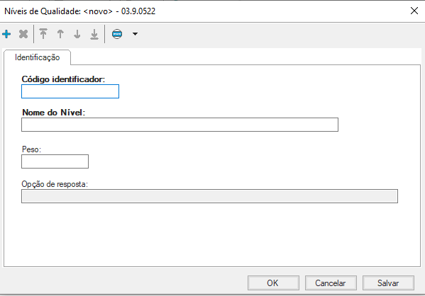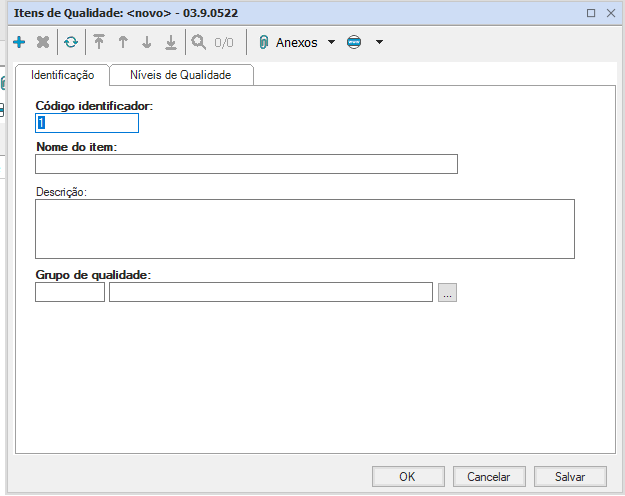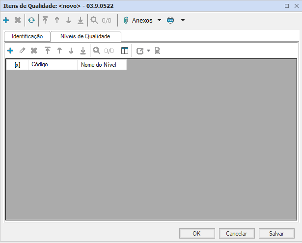 Repita esse processo até realizar o cadastro de todos os níveis do item de qualidade cadastrado. Depois de cadastrar todos os níveis de qualidade clique em “OK”