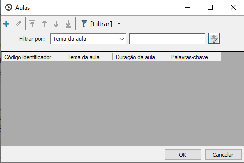 Depois de preencher os dados clique em “OK”, repita esse processo até todos os assuntos referentes ao curso estarem cadastrados