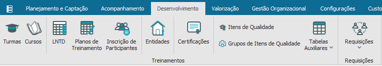 Os cadastros abaixo fazem parte do “Módulo RH- Gestão de Pessoas” aba “Desenvolvimento”