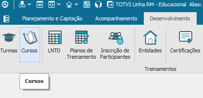 O Cadastro de Curso guarda informações relativas a cursos ministrados por entidades (empresas que prestam serviços para a coligada), como dados sobre a carga horária e conteúdo programático do curso, para que o usuário responsável possa gerenciar a aplicação de treinamentos