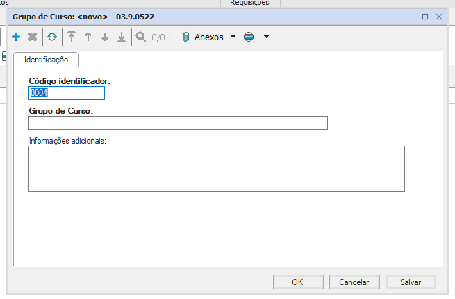 - Grupos de Curso: Este cadastro é destinado ao registro dos grupos dos cursos ministrados na empresa, para facilitar a organização de cada curso ligado a cada área de atuação. Cada grupo deverá ter uma informação adicional especificando a que se refere sua qualificação: