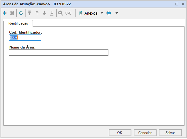Escolha a opção “Área de Atuação”, aperte o ícone “Incluir”, preencha os campos da tela de cadastro e clique em “Salvar”