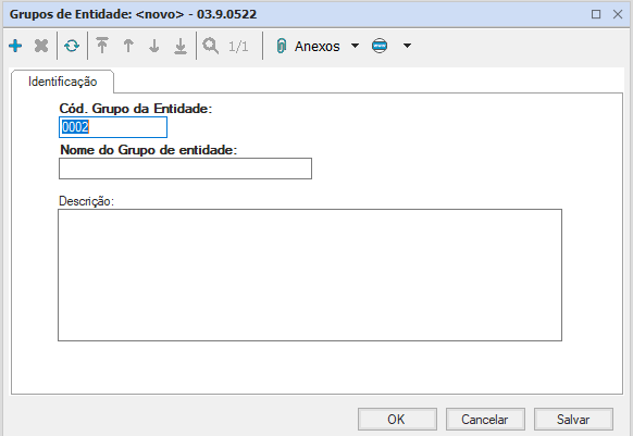 Escolha a opção “Grupos de Entidades”, aperte no ícone “Incluir”, preencha os campos da tela de cadastro e clique em “Salvar”