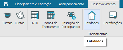 – Somente as Entidades que estejam com o campo “Ministra Treinamentos” marcado, serão disponibilizadas para serem vinculadas ao Curso.