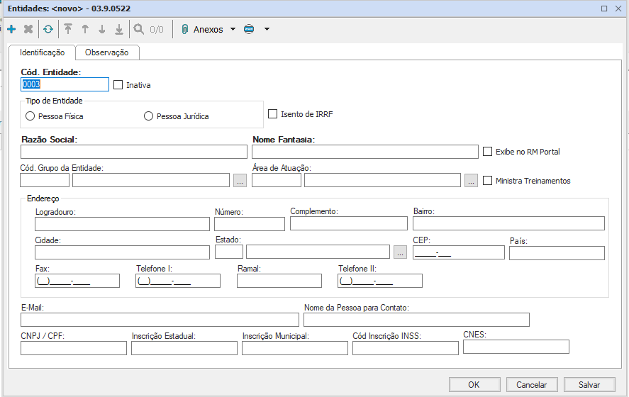 Ao escolher essa opção e selecionar o ícone “Incluir”, preencha as informações do cadastro em negrito e clique em “OK” para concluir o cadastro.