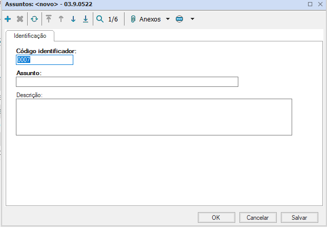 Observação: O campo Código Identificador tem que ser preenchido manualmente de forma sequencial.