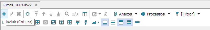 Para realizar o cadastro escolha a opção “Cursos” e selecione a opção “incluir” localizada no cabeçalho da tela