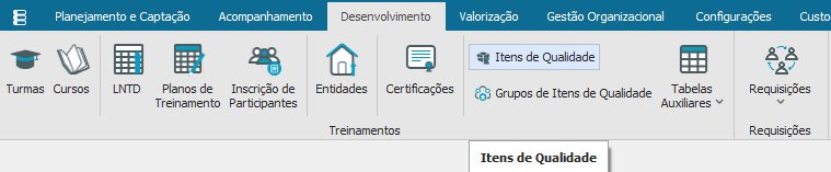 Itens de Qualidade, define os níveis, para serem utilizados na avaliação dos treinamentos pelos alunos que avaliarão a qualidade e o grau de satisfação quanto ao treinamento recebido ao término do curso
