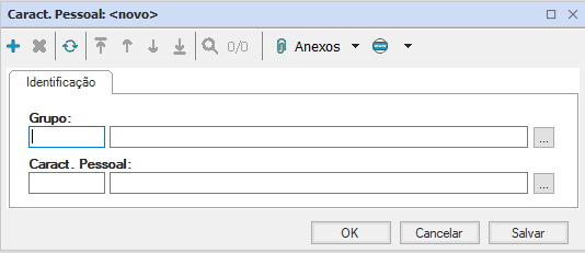 Selecione o ícone “Incluir”, acrescente a característica pessoal, filtrando o grupo e a característica específica e selecione “OK”