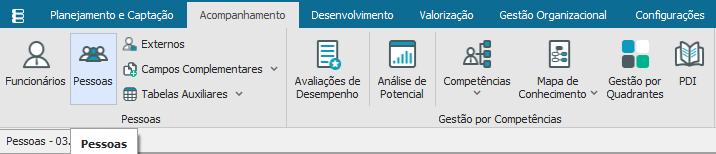 Depois de efetuar o cadastro das certificações é necessário vincular a certificação para a pessoa determinada. Para realizar esse processo selecione a aba “Acompanhamento” opção “Pessoas”