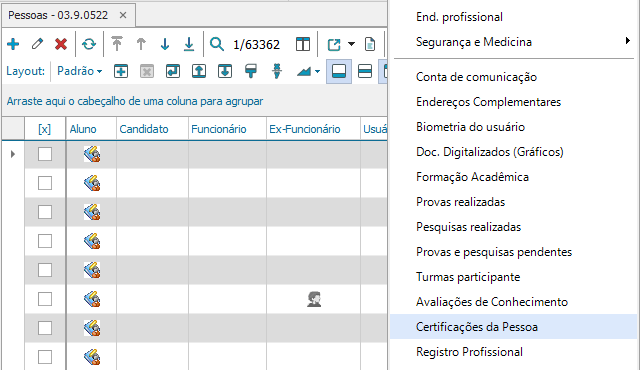 Selecione a pessoa e clique em “Anexos- Certificações da Pessoa”