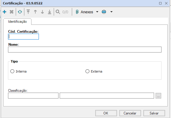 Nome: Informar o nome da certificação que está sendo cadastrada;