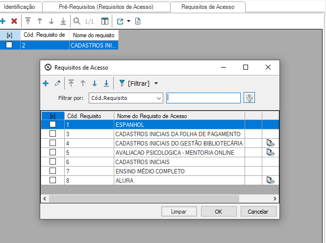 Depois de selecionar o Pré-Requisito ou Requisito de Acesso clique em “OK”
