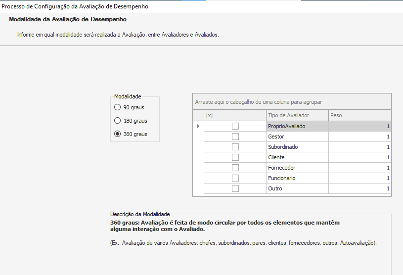 - Modalidade 360 graus: É a união da autoavaliação do funcionário e avaliações dos que trabalham com ele, incluindo, o gestor e colegas de trabalho