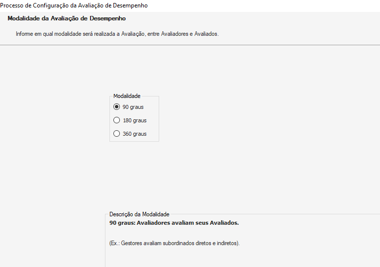 - Modalidade 90 graus: Gestor avalia o funcionário