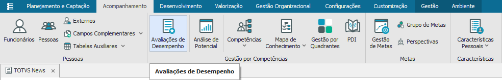 Após realizar as etapas pode-se criar a Avaliação de Desempenho na aba “Acompanhamento”
