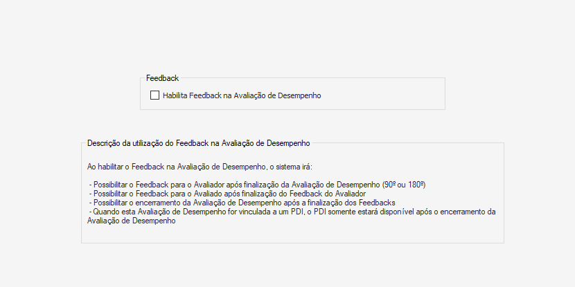 Ao avançar é possível habilitar o campo de “Feedback”, para que o gestor e o colaborador tenham acesso ao feedback da avaliação de desempenho