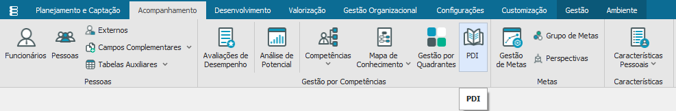 Para realizar o cadastro, selecione a opção “PDI” na aba “Acompanhamento”